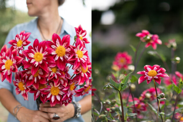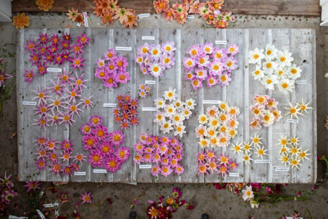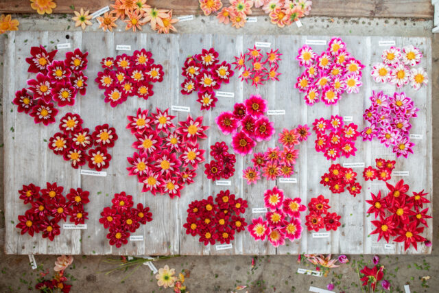 The vast majority of the dahlias that we grow now are part of our breeding program, and a large percentage of those fall into the collarette and anemone classes. These two flower forms have exquisitely beautiful blooms but are notoriously short-lived as cut flowers, so I’ve been focusing my energy on breeding varieties that have an improved vase life.