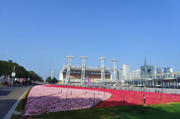 Over 300,000 pots of Beacon Impatiens were planted at the Guangzhou Haixinsha Asian Games Theme Park. The coordinated use of three cultivars—’Bright Red’, ‘Lipstick’, and ‘Light Pink’—enhanced the visual appeal of the landscape, serving as a festive landmark and conveying a warm welcome to residents and visitors.