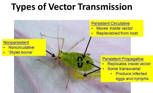 Figure 1. There are multiple types of vector transmission of viruses. Tomato spotted wilt virus and impatiens necrotic spot virus are persistent propagative viruses
