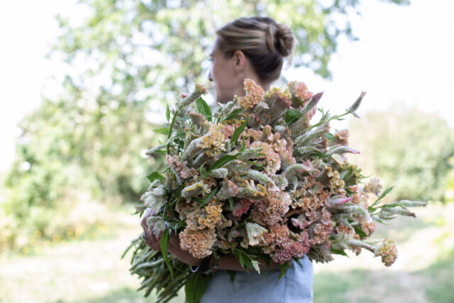 Flowers come in a distinct range of shapes, including fans, plumes, and brains. I find that the plume varieties are the most versatile when it comes to flower arranging and have a soft spot for our farm-bred mixes, including ‘Autumn Blaze’, ‘Rose Gold’, ‘Spun Sugar’, ‘Summer Sherbet’, and ‘Vintage Rose’.