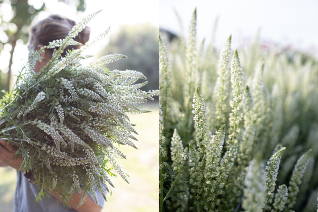 These vanilla-scented workhorses produce beautiful wands of creamy flowers that bloom over a long period of time. As the flowers fade, they are followed by darling textural seedpods that look like miniature green lanterns. But the best part about these flowers is how much the pollinators love them. There are often so many bees on the plants that harvesting can be a little tricky.