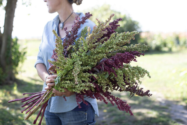 Of all the foliage plants we cultivate here on the farm, orach is one of the most useful and easiest to grow. Early in the season, plants produce lush foliage that holds an incredibly long time in the vase. Later, its long branches of multicolored, textural seed wands work as a wonderful bridging ingredient.