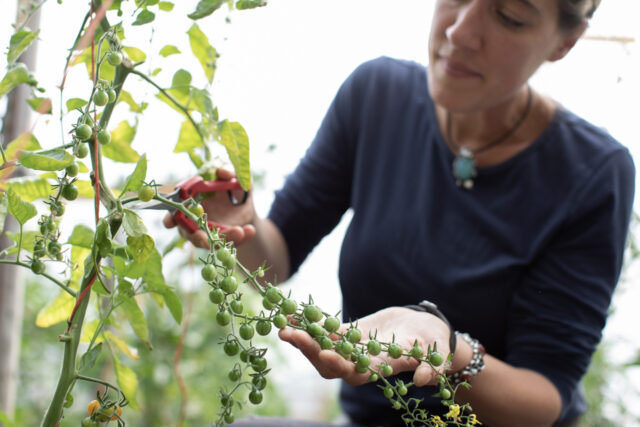 One of my very favorite things to sneak into an arrangement, tomatoes are definitely a conversation starter. It’s important to choose varieties with an indeterminate habit, which means that they’ll keep growing taller, so you can cut from them all season long.