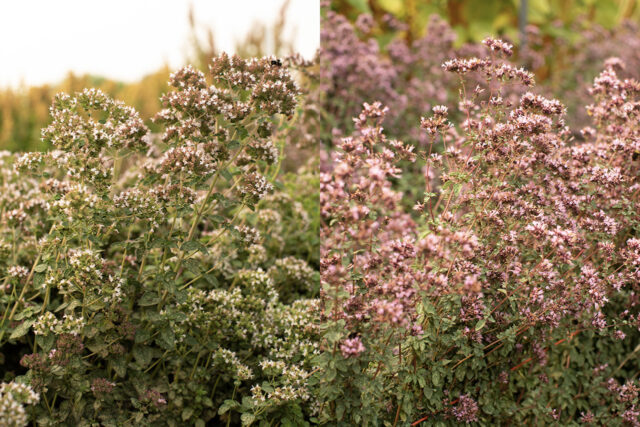 The cutting garden has a long row of all three of my favorites: Greek, ‘Herrenhausen’, and ‘Hopley’s Purple’. I recently also discovered the strongly scented Italian oregano. It makes a lovely textural filler and its seed heads look like tiny hops.