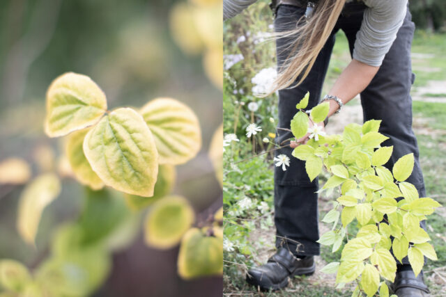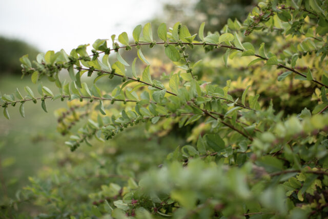 Some of my favorite foliage to use in bridal bouquets and statement pieces comes from this unassuming shrub. Its leathery foliage takes on a chartreuse wash by midsummer and the tiny, rounded leaves are edged in copper, making it a great bridging ingredient. From late fall through February, the branches are smothered in miniature magenta berries that stay on the plant during the coldest parts of winter.