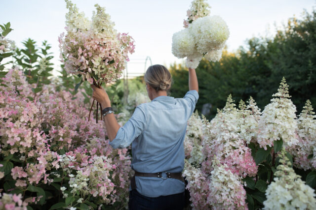 Although hydrangeas produce big, billowy flowers, I find myself using them as a textural ingredient, more like a foliage. They are a perfect addition to large-scale arrangements. PeeGee hydrangeas are some of the easiest, most productive shrubs you can grow. They bloom on new wood, so pruning is easy. The harder you prune them in winter, the larger their flowers will be in the summer. Plant multiple varieties to extend the bloom window from midsummer through autumn. This type of hydrangea does well in part to full sun, depending on your climate.
