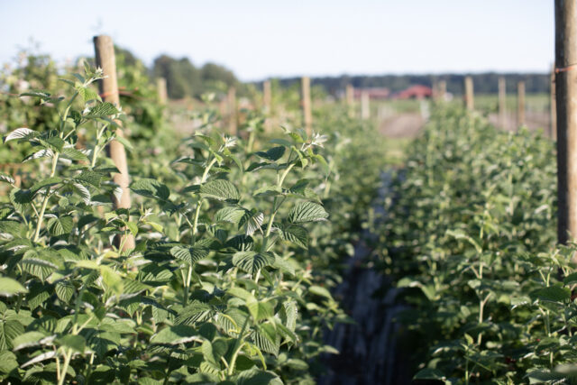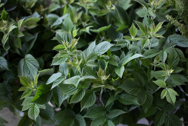 Raspberries are some of the best foliage plants you can grow. For cutting, I like to grow ‘Fall Gold’, ‘Heritage’, and the summer-bearing ‘Tulameen’.