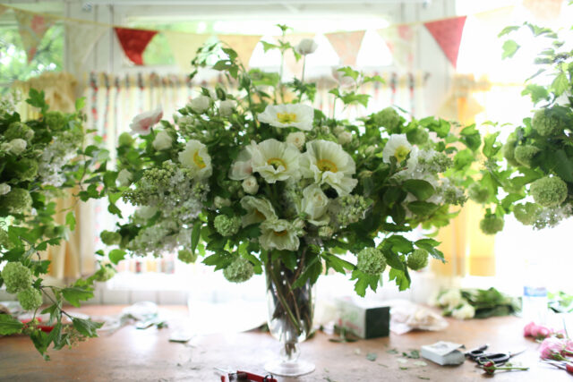 Shrubs are a wonderful source of material for cutting, especially if you have the space. Many produce beautiful flowers in the spring, followed by useful foliage in the summer and textural berries or seedcases in autumn. All around the farm we’ve experimented with plantings of small trees and shrubs that are both suitable for cutting and provide food and shelter for birds and wildlife.