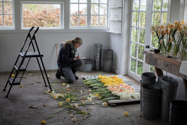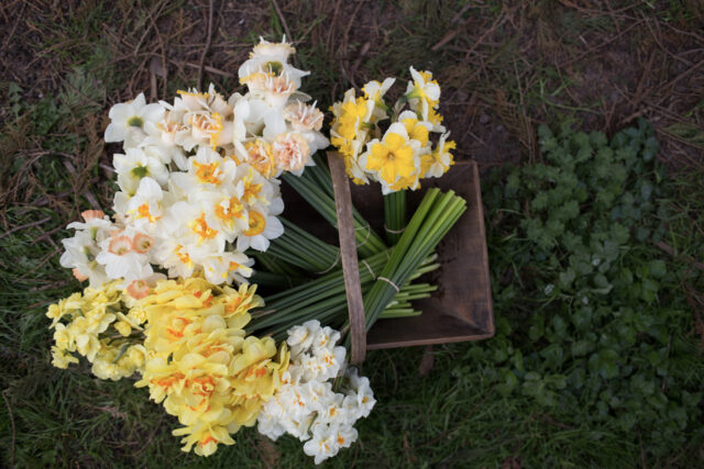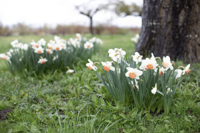 Over time, the way that we grow our daffodils has also evolved. In the beginning, we planted them in long, straight rows in the cutting garden, but as my collection grew, I eventually ran out of space, and a few summers back Chris lovingly moved all 40,000 bulbs out into the orchard to grow at the feet of our apple trees.