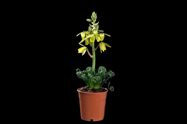 Next is the Albuca spiralis ‘Frizzle Sizzle’. “It continues to be some of our hottest-selling starter material due to its unique curls and interesting white vanilla-scented flowers. This fits especially in succulent programs, indoor programs and web shops. We ship these bulbs worldwide.”