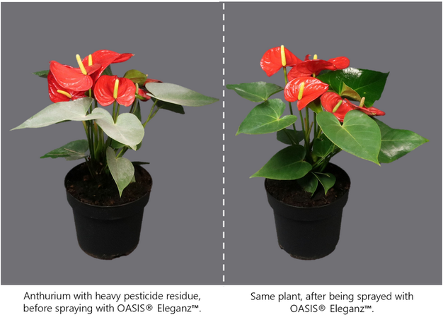 The new Oasis Eleganz Liquid Leaf Clean, Shine and Protect concentrate from Oasis© OASIS Grower Solutions Grower Solutions brings foliage growers and retailers a better way to remove production residue, enhance natural plant beauty, and safeguard the value of foliage crops.