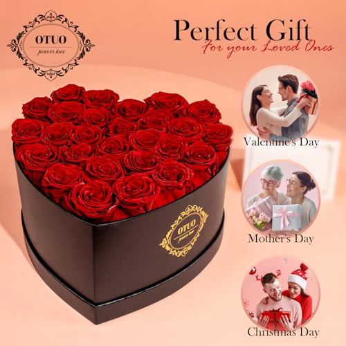 27 Preserved Roses in Heart-Shaped Box, Flowers for Delivery Prime Last up 2 Years, Real Forever Flowers for Wife, Girlfriend, Mother, Eternal Roses for Anniversary – Red