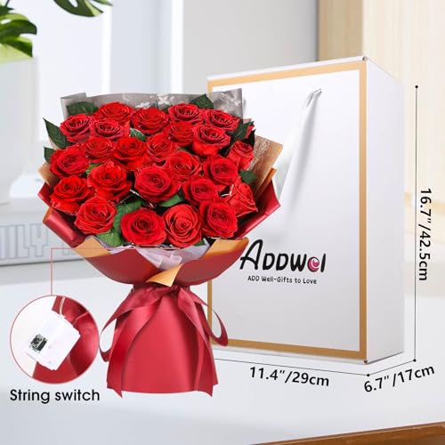 Eternal Love in Every Bloom: Experience the magic of love with our ADDWel preserved rose bouquet, featuring 24 breathtaking real red roses, delicately surrounded by a radiant string of multicolored lights. These stunning roses are expertly preserved to last for 3-5 years, making them the perfect eternal symbol of your affection. A stunning and thoughtful gift, guaranteed to make her smile.