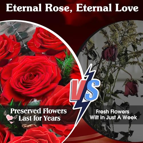 Specification: ADDWel 24 Preserved Real Red Rose Bouquet Long-Lasting Flowers for Her and Romantic Gifts for Wife Girlfriend, Two Dozens Forever Fresh Roses for Delivery Prime