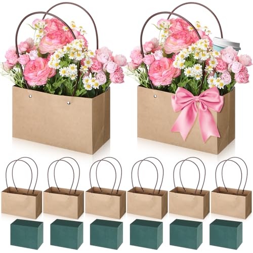 Specification: AmazingSpark 6 Set Flower Gift Boxes with Floral Foam Blocks Flower Carrier Bags for Bouquets Paper Bouquet Bags with Handle for Floral Arrangement Graduation Birthday Wedding Party Favor (Brown)