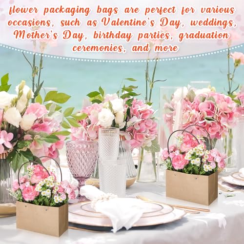 Wide Application: our small brown bouquet bag sets with long handles are not only suitable for packaging handmade bouquets, fresh and dried flowers, but also suitable for party gifts, snacks, candies, chocolates, handicrafts, toys and more, and also suitable as decorations for weddings, baby baptisms, birthdays, garden parties