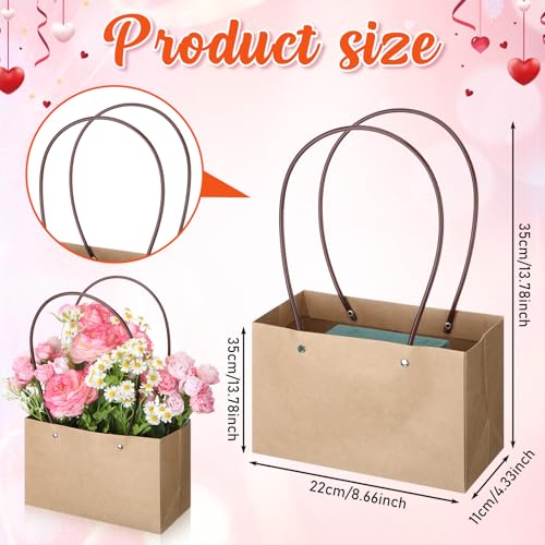 Ideal Size: our kraft paper bouquet bag measures about 8.7 x 4.3 x 5.5 inches/ 22 x 11 x 14 cm, and the size of the floral foam block is about 4.3 x 3 x 4.1 inches/ 11 x 7.6 x 10.5 cm, the floral foam block can be put into the bouquet bag; The bag is of suitable size and is suitable for packaging handmade bouquets, small items, snacks and more