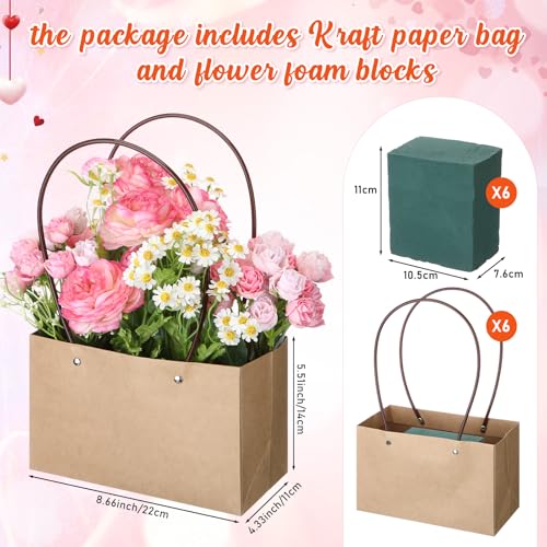 Package Includes: you will receive 6 flower gift bags with handles and 6 green floral foam blocks; The combination of multiple bags and floral foam blocks can meet your bouquet packaging and gift decoration needs