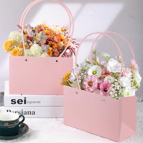 【What You Will Get】You will receive 16 pieces paper gift bags with handles,these gift bags are perfect for packing hand tied bouquets, fresh flowers and dried flowers, floral arrangements, small potted plants…