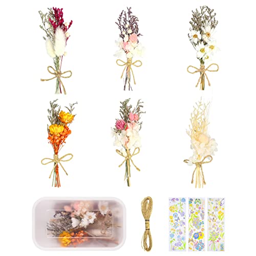 BOUQUET SET – The material package includes a variety of 6pcs mini dried flower bouquets in different colors, 3 gold foil flower stickers. can save time for your DIY and meet your different needs