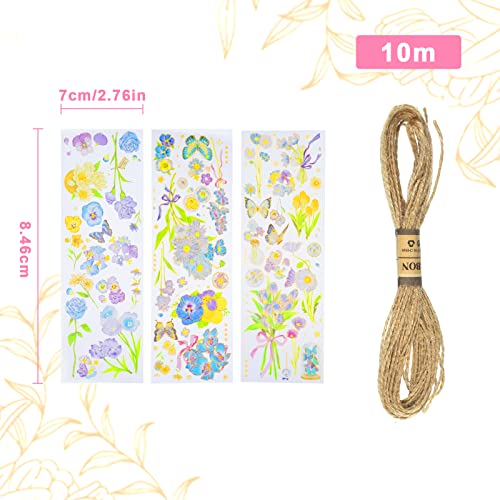 Specification: Chenkaiyang 6Pcs Mini Dried Flowers Bouquet, Mixed Natural Dried Flowers Gypsophila Bouquets Boutonniere Table Centerpieces Birthday Cake Flowers for DIY Crafts with 3 Flower Stickers 10m Hemp Rope