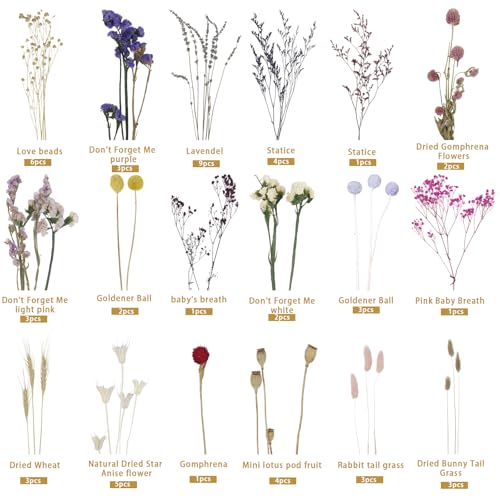 Specification: CISDUEO Dried Flowers Bouquet Dried Forget Me Not Natural Lavender Dried Flowers Bunny Tails Baby’s Breath Flowers Wheat Stalks Floral Arrangements for Wedding Table Centerpiece Decor Farmhouse DIY