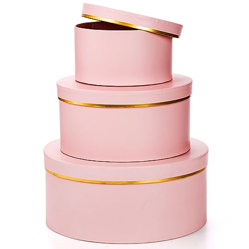 Specification: Coloch 3 Pcs Round Gift Boxes with Lid, Pink Flower Box with Golden Rim Nested Party Favor Boxes for Flower Arrangement, Birthday, Wedding, Christians, Anniversary, Pink, 3 Sizes