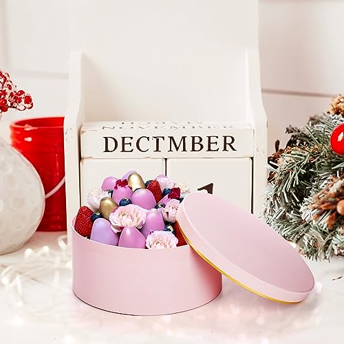 Coloch 3 Pcs Round Gift Boxes with Lid, Pink Flower Box with Golden Rim Nested Party Favor Boxes for Flower Arrangement, Birthday, Wedding, Christians, Anniversary, Pink, 3 Sizes