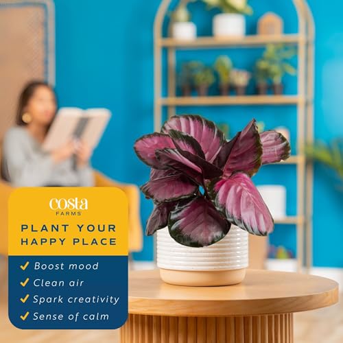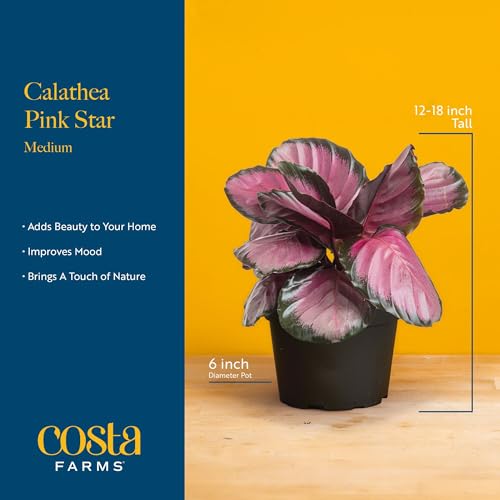 Costa Farms Calathea Pink Star Live Plant in Decorative Pot, Indoor Houseplant, Perfect for Home, Room, or Office Decor, Great House Warming or Birthday Gift, 12-18 Inches Tall