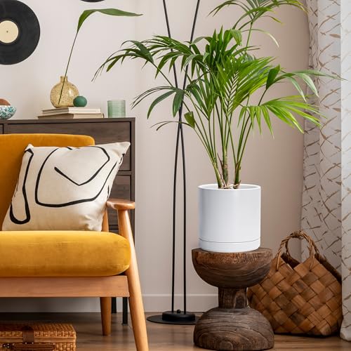 Specification: D’vine Dev 8.2 Inch Ceramic Planter Pot with Drainage Hole and Saucer, Indoor Cylinder Round Planter Pot, White, 94-O-D-1