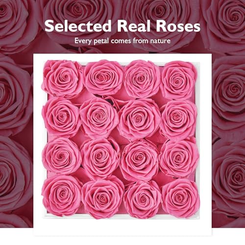 Specification: Eterfield Forever Flowers Preserved Roses Real Roses That Last Over a Year Rose Box Gifts for Her Mothers Day Valentines Day Christmas (Square White Box, 16 Pink Roses)