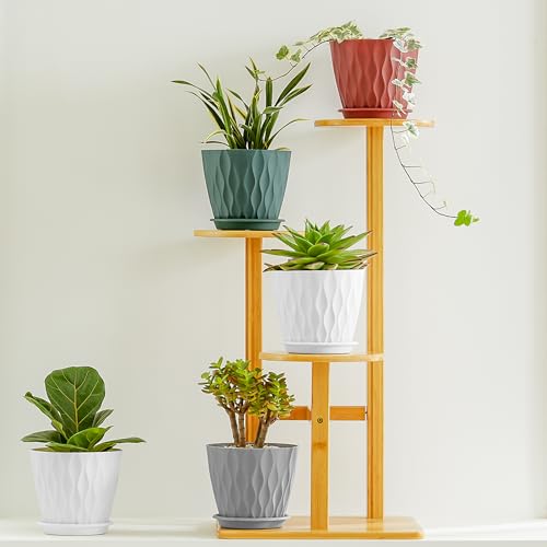 Specification: FaithLand 6-Pack 6-Inch Plastic Plant Pots with Saucers | Thickened PP Material, Modern Wave Texture, Enhanced Drainage for Indoor/Outdoor Garden Plants | Multicolor Value Set