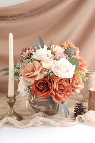 Specification: Floroom Terracotta Artificial Flowers Burnt Orange Fake Roses Peonies Dahlia Greenery Combo Box Set for DIY Wedding Bouquets Bridal Shower Centerpieces Floral Arrangements Party Tables Home Decoration
