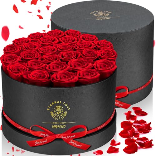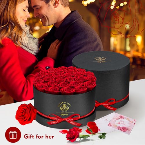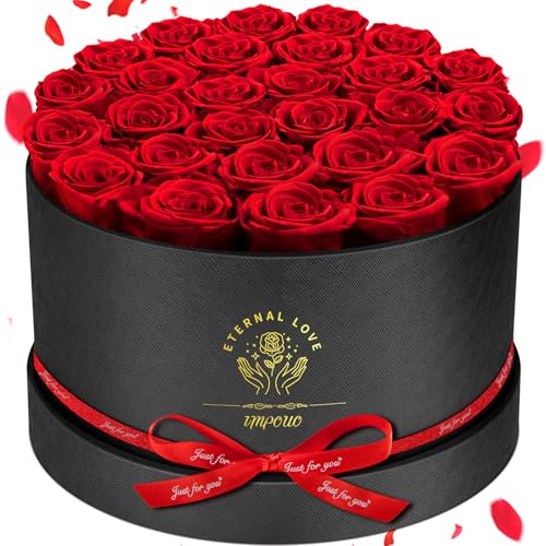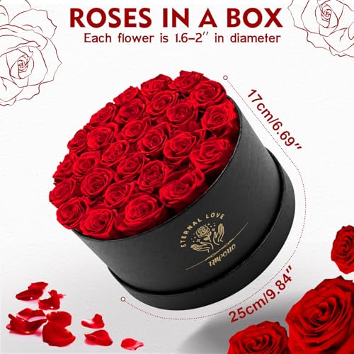Impouo Forever Flowers, 27 Roses in A Box, Real Preserved Roses, Birthday Gift for Women, Mother’s Day, Anniversary, Red Rose