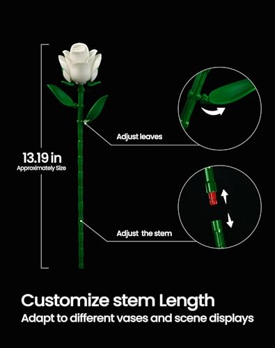 Specification: iATOM White Rose Bouquet Building Set, Wedding Artificial Flowers Botanical Collection for Adults Women, Gift for Christmas & Valentines Day – Home Office Table Centerpiece Decor – IA11013