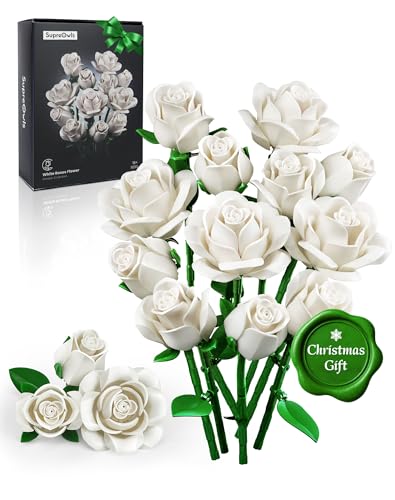 [12Pcs White Roses Flower] – SupreOwls white roses building set is carefully designed with different petal shapes representing the vitality of the roses flower at different stages to present a more realistic rose appearance