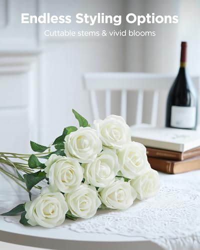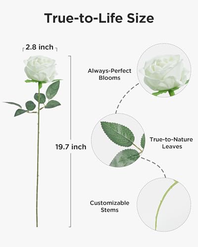 Specification: InnoGear 50 Pcs White Roses Artificial Flowers, Fake Velvet Silk Rose Bulk Faux Flower for Decoration DIY Wedding Centerpieces Proposal Bridal Bouquets Shower Party Home Floral Decor (50, White)