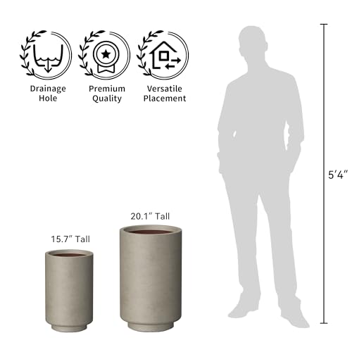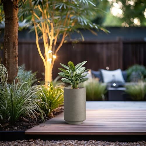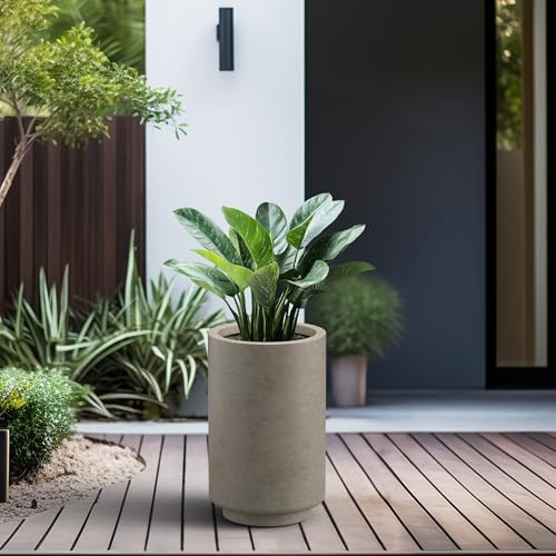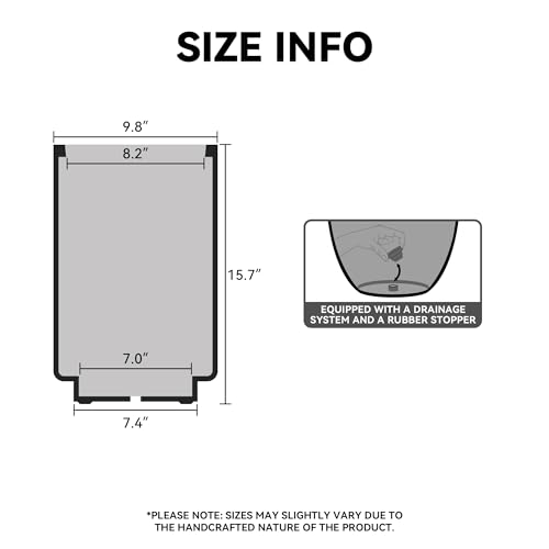 Kante 15.7 Inch Tall Concrete Planter, Round Pedestal Design Garden Pot for Indoor Outdoor Plants, Modern Garden Pot with Drainage Hole, Weathered Concrete Finish With Painted InteriorPremium Concrete Planter – Discover a modern design with smooth, flowing curves and a naturally weathered finish that exudes timeless appeal. Crafted with care, this statement piece seamlessly blends contemporary style with organic texture, featuring subtle pores and a softly tinted interior that enrich its calm and refined sophistication, adding a refined touch of character to various surroundings.Handmade Plant Pot – Crafted from a premium concrete mixture, it maximizes durability, strength, and resistance to weather and damage, making it an ideal choice for both indoor and outdoor gardening enthusiasts. The pot’s enduring color, combined with its UV resistance, ensures that it maintains its vibrant appearance under outdoor conditions.Large & Versatile – Whether used to showcase a plant indoors or positioned on the front steps, porch, or patio, this generously sized planter enhances modern, minimalist, and traditional styles with its unique design. Its versatility makes it well-suited for a variety of settings, seamlessly integrating into any space while adding a touch of natural beauty.Drainage System – Our flower pot features strategically placed drainage hole for efficient water management, each equipped with a rubber plug to provide flexibility for both indoor and outdoor use. This thoughtful design ensures proper drainage while preventing water damage to surfaces, allowing you to enjoy effortless gardening with minimal upkeep and promoting a healthy environment for your plants.