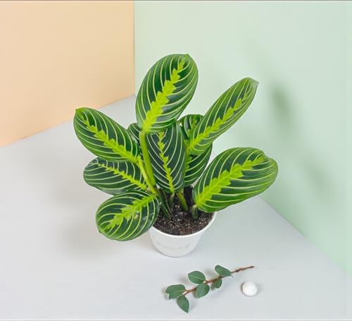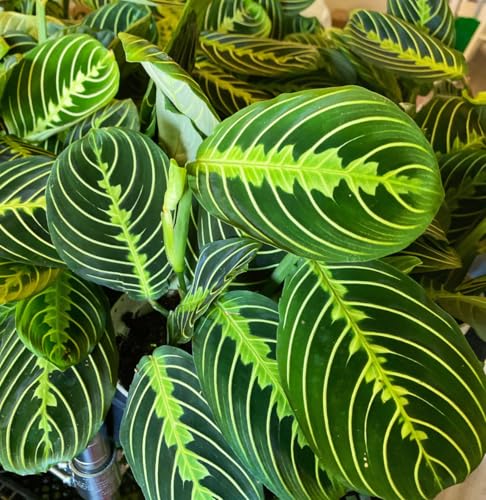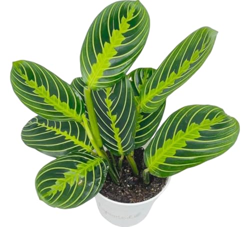 LIVE INDOOR PLANT -Bring home the stunning Lemon Lime Maranta Prayer Plant and enjoy a touch of tropical calm. With its vivid green leaves brushed with yellow and dark-green veins, this houseplant brings instant warmth and charm to any room. Watch as its leaves fold upward at night like praying hands — a living rhythm of peace and nature.