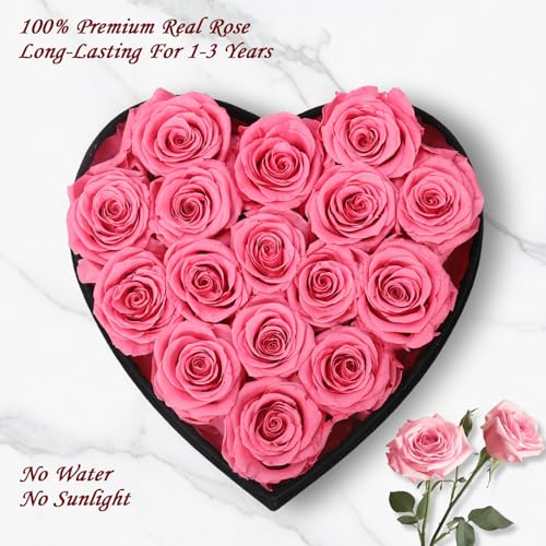 Luxury Forever Real Roses in Suede Heart-Shaped Box,16 Preserved Roses Valentines’s Day, Forever Flowers for Women,Preserved Flowers Gifts for Delivery Prime Birthday, Mother’s Day (Pink)