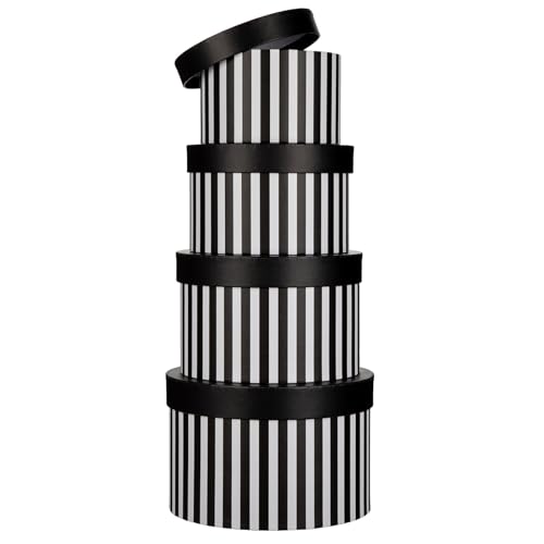 Oairse Gift Boxes with Lids for Presents Black and White Striped Round Box for Flower Arrangements Set of 4 Nesting Gift Boxes Bulk for Bridesmaid, Proposal, Wedding, Birthday, Party Favor Graduation