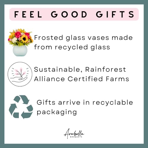 A Brighter Future: We pride ourselves on our commitment to making your fresh flower delivery as green as possible. Our gorgeous, hand-blown glass vases are made from 100% recycled material by a small, family-operated business so you can feel even better about your fresh cut flower bouquet! Our flowers are sent in recyclable packaging to make things easy on you and your gift recipients.