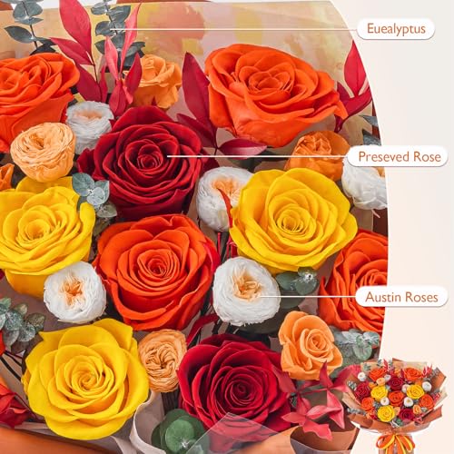 Hand-Made Flowers Bouquet: All preserved bouquets are designed and hand-made by skilled florists. The eternal flowers bouquets arrive in a beautifully designed box that enhances the anticipation and excitement of unwrapping a special gift.