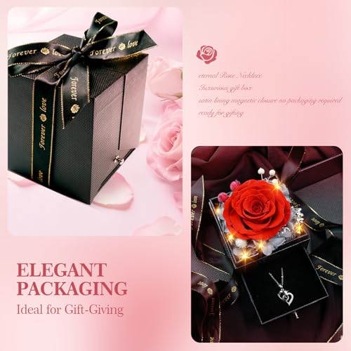 🌹【A Gift that Combines Practicality & Commemorative】In addition to being a romantic expression of love, this gift is also very practical. The necklace can be worn daily and become a beautiful scenery on the lover’s body; And eternal flowers can be used as home decor to add a romantic atmosphere to life, constantly reminding each other of their beautiful memories and commitments