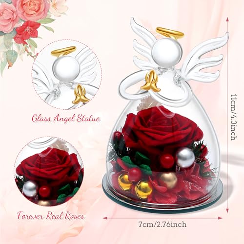 SITUMEIZI Christmas Rose Gifts for Women,Birthday Gifts for Women Mom,Preserved Rose in Glass Angel Figurine,Angel Christmas Rose Gift for Grandma,Red Gifts Flowers Anniversary Valentines