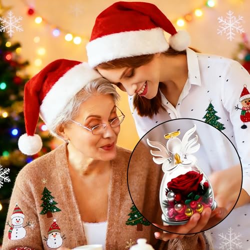 Specification: SITUMEIZI Christmas Rose Gifts for Women,Birthday Gifts for Women Mom,Preserved Rose in Glass Angel Figurine,Angel Christmas Rose Gift for Grandma,Red Gifts Flowers Anniversary Valentines