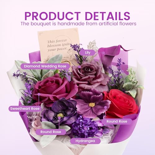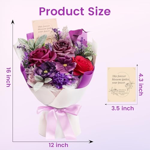 Specification: TINGE TIME Aritifical Flowers Bouquet, Purple Gift Bouquet, Birthday Gifts for Women, Eternal Roses Bouquet for Grandma Wife Anniversary