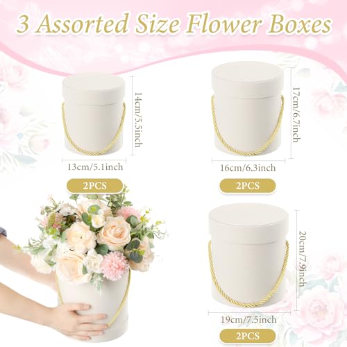 Flower Gift Box Set: you will receive 6 pcs round gift boxes with lids in 3 different sizes; These boxes not only serve as an excellent flower carrier but also make a gift in themselves; Please note flowers are not included