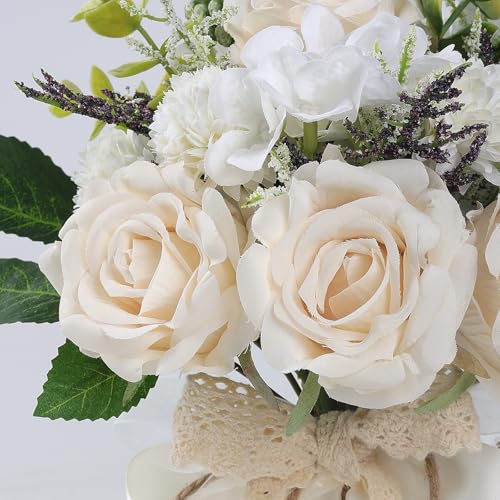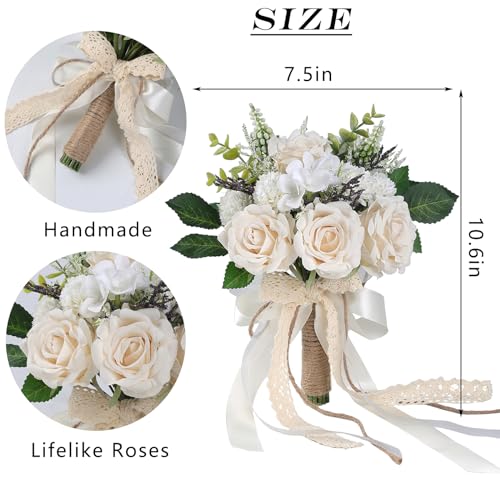Wedding Bouquets for Bride Bridesmaid,White Champagne Artificial Roses Flowers for Wedding Church Decoration (7.5in)