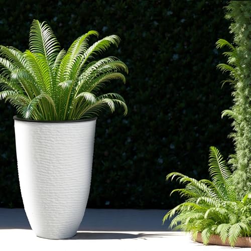 Spacious Design: Each planter measures 21 inches in height and 14 inches in diameter, providing ample space for plants and trees; Made from high-quality plastic, 85% recyclable PP +15% stone powder, these planters are built to withstand outdoor conditions